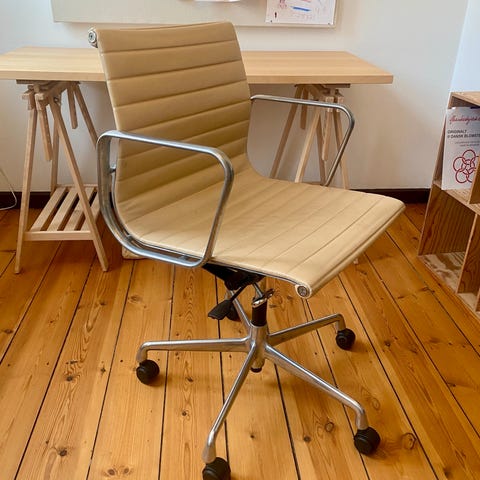 Der er tale om den legendariske Eames Soft Pad EA217 L50, ofte omtalt som Rolls-Royce’en inden for kontorstole – en tidløs designklassiker, der forener æstetik, komfort og kompromisløs kvalitet.