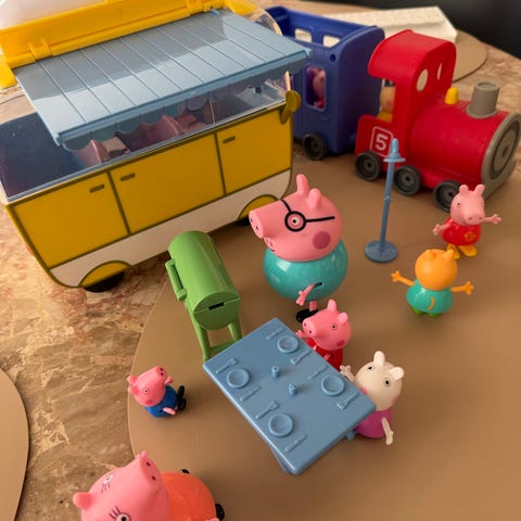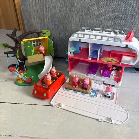 Gurli Gris legetøjssæt campingvogn med figurer. Sættet indeholder en gul campingvogn med aftagelig top og flere løse dele samt figurer fra Gurli Gris-universet. Campingvognen kan åbnes, så figurerne kan placeres indeni. De medfølgende små dele kan bruges som tilbehør i legemiljøet omkring campingvognen.