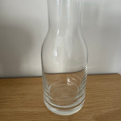 Eva Solo vandkaraffel / kaffekande. Kan bruges som vandkande uden metaldimsen eller som kaffekande med metaldimsen. En rød neopren thermo sleeve, følger med. Den holder kaffen varm længere. Kanden er blevet brugt kun til vand.