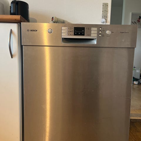Bosch underbygget opvaskemaskine i rustfrit stål. Maskinen er beregnet til indbygning under bordplade og har frontbetjening. Indersiden er i rustfrit stål og er markeret med Zeolith-teknologi, som indikerer et særligt tørringssystem.