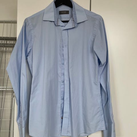Herre skjorte af mærket Cotton Island i str L i bomuld. Lys blå farve med små tern og venstre brystlomme.