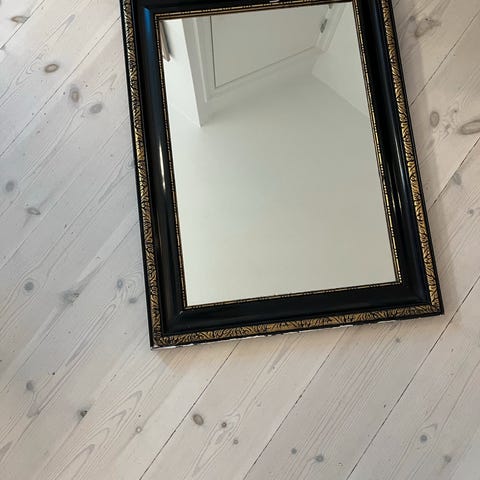 Vintage sortmalet spejl med brugsspor i malingen - se foto. 50x60