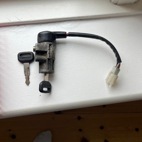 Forlygte med med fatning men uden pære. Lygten er hel og uden skade. Lygte skjold er knækket lidt men sidder fint.