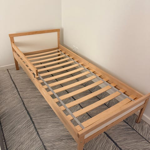 Rigtigt godt og stabilt sengestel fra FLEXA, brugt til et barn. Få ridser på ene side (se billede), i øvrigt i super stand.