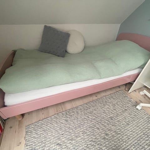 De organiske og runde former, rene linjer og bløde farver kombineret med et stærkt skandinavisk design lyser op på ethvert børneværelse. De smukke ben, som er fremstillet af ask, giver sengen en lethed og varme, mens de farvede fødder tilføjer et legende touch. Tilføj en bunke puder, så kan sengen bruges som en minisofa, der er perfekt på legeværelset.