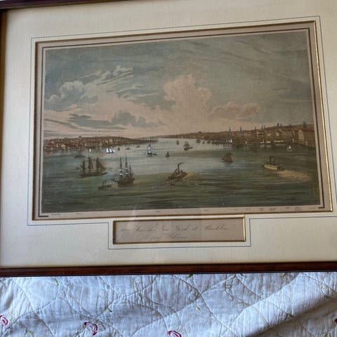 Vue du chateau de Biberich. Måler: 24 x 17 cm incl ramme. Kan sendes. Fragtomkostninger kr 53,-