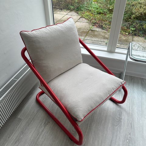 IKEA skriver. I vores katalog fra 1972 blev GOGO serien beskrevet som "slanger i sjove former med ekstrabløde puder." I Nytillverkad kollektionen hedder lænestolen og puderne ÖNNESTAD og er designet af Charlotte Rude og Hjördis Olsson-Une.