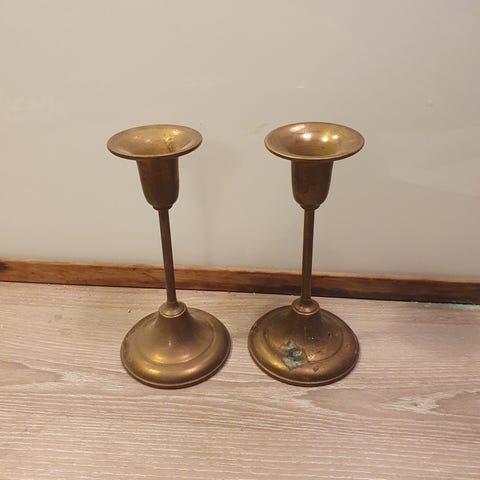 Lysestager i messing, 2 stk. med klokker. Sælges samlet for