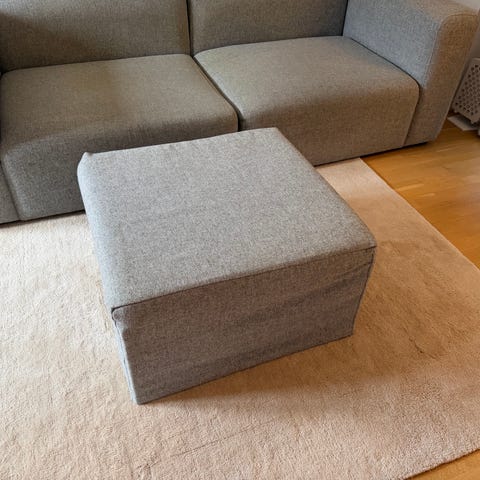Puf med sovefunktion, hvidt betræk til når den ikke bruges som seng, fejlkøb pga anden anvendelse af rum, to styks haves, nypris 4500 stykket