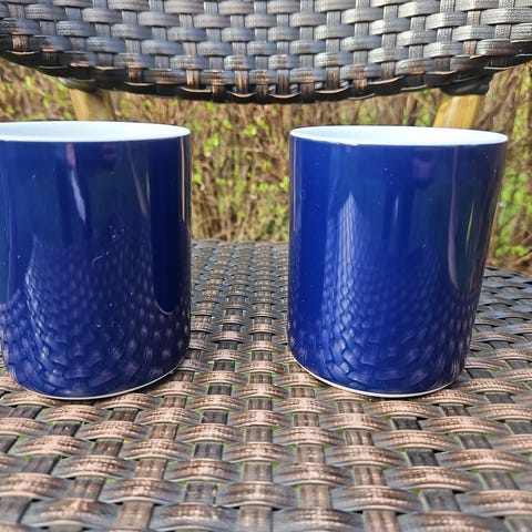 7 stk termokopper i porcelæn med grafisk mønster i sort og hvid.
