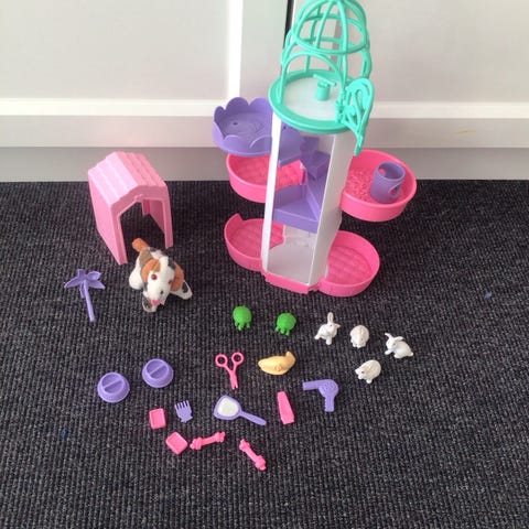 Barbie tumling/barn med diverse tilbehør som set på billederne