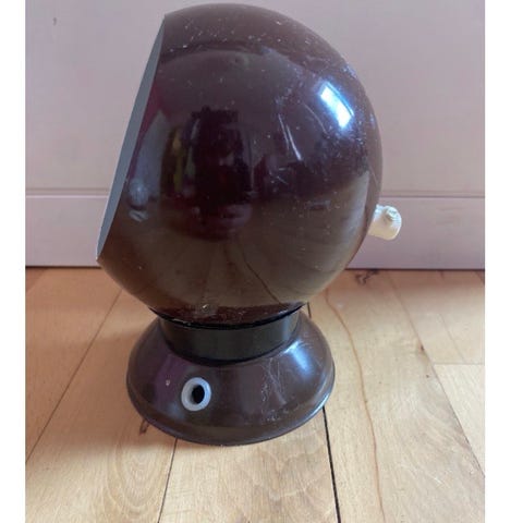 Klassisk rød, hvid og blå lampe fra 1950-60erne brugt i kælder og skur. Kan sidde på væg eller i loft.
