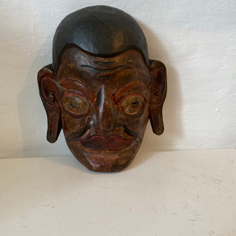 Elegant 'elefantaskebæger' udskåret i træ med fire elefanter, som med deres snabler udgør benene. I disse ikke-ryger tider, kan bægret selvfølgelig også bruges som slikskål eller andet - og har i øvrigt aldrig været brugt som askebæger.