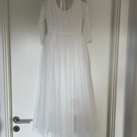 Den yndigste lyserøde prinsessekjole fra en skrædder i Sverige. Brugt et par gange men fremstår ellers som ny. Med fine perle/blomster detaljer. Der medfølger en yndig lyserød jakke i samme materiale.