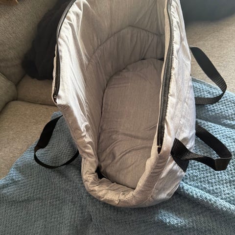 Trille lift til barnevogn i sort. Liften har bærehanke i siderne og lynlåsåbning i toppen. Indersiden er lys med mønster. Egnet til brug i barnevogn til spædbarn, kan anvendes til transport og som soveplads på farten. Materiale fremstår som tekstil med polstring for komfort til barnet.