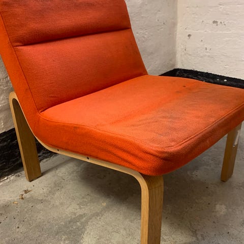 Lænestol med puf fra bolia. Brugt, men ok stand. Betrækket kan tages af og trænger til at blive vasket.