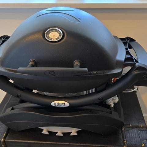 WEBER 3200 GRILL MED 2 RISTE OG 1 PANDE, BRØD RIST, GRØNSAGSBAKKE, GASSLANGE MED TRYK MÅLEENHED.