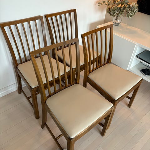 Stolene er stabile og behagelige at sidde i – perfekte til spisebordet, køkkenet eller sommerhuset.