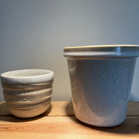 Lys, sandfarvet urtepotte. Ingen skår eller skader.