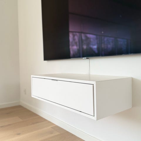 Har ingen brugsspor udover de huller der er boret bagpå til kabler.