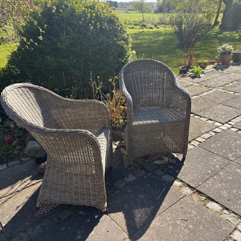 Møblerne er taget ind hver efterår/ vinter og opbevaret tørt.
