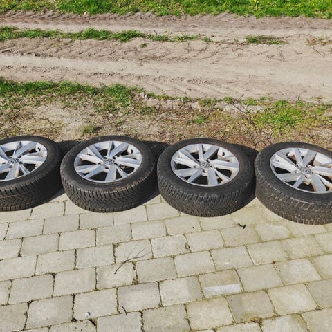 Sæt med 4 stk. originale VW alufælge med Goodyear UltraGrip 9 vinterdæk sælges.