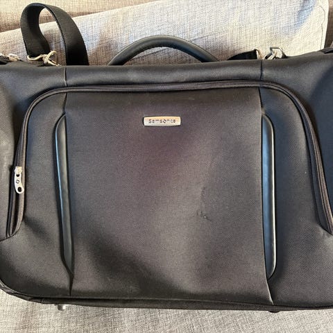 Samsonite taske til habitten eller kjolen, når det skal transporteres uden at man absolut skal have en kuffert med på turen.
