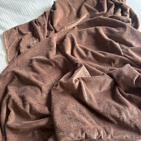 Plaiden er brun/grå og vævet af uld fra svenske Gotlandsfår.