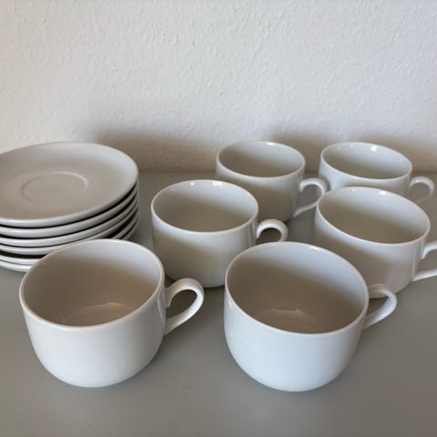 Hvid riflet højhankskopper 24 cl m. underkopper fra Royal Copenhagen