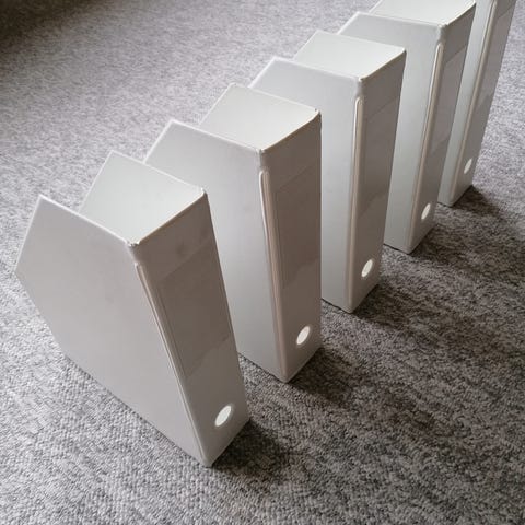 3 stk sorte tidsskriftskassetter og 1 sølvfarvet - alle i metal.