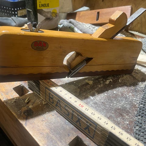Sælger denne Stanley Bailey høvl i fin stand. Ingen gravrust og lidt overfladerust er fjernet. Høvlen er nyslebet og klar til brug. Den er nok fra 70erne og fremstillet i Sheffield, England. Håndtag og knob er i træ og uden revner eller limninger. Bemærk, at det er Baileyudgaven og ikke den simplere Handymanudgave. Prisen er 350 kr.