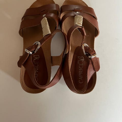 Sandaler str. 38 cognac farvede. Skind over det hele. Kan reguleres 2 steder med velcro.