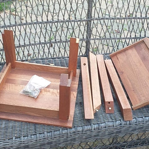 Der er tydelig skimmelvækst på træet og rust på toppen af taget. Den er købt i Nov. 2025 og har fået refunderet pengene fra producenten pga. manglerne. Føler derfor ikke jeg kan tillade mig at tage penge for den, så den kan afhentes her for en pose majsekugler fra Rema 1000.