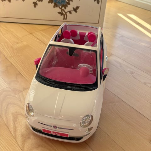 Barbie bil som legetøjsbil i cabriolet‑stil. Bilen er lyserød med åbent tag og plads til dukker indeni. Velegnet til leg med Barbie‑dukker og andre dukker i tilsvarende størrelse. Bilen har detaljer som sæder, rat og hjul, der kan rulle, og kan bruges som tilbehør i Barbie‑legeuniverset.