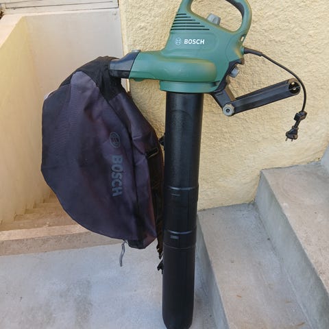 Bosch ALS 25 løvsuger og løvblæser. Elektrisk havemaskine til opsamling og blæsning af blade og mindre haveaffald. Enheden leveres med opsamlingspose og bærestrop samt blæserrør. Velegnet til brug på terrasser, indkørsler og i haven til almindelig oprydning af løv og smågrene.
