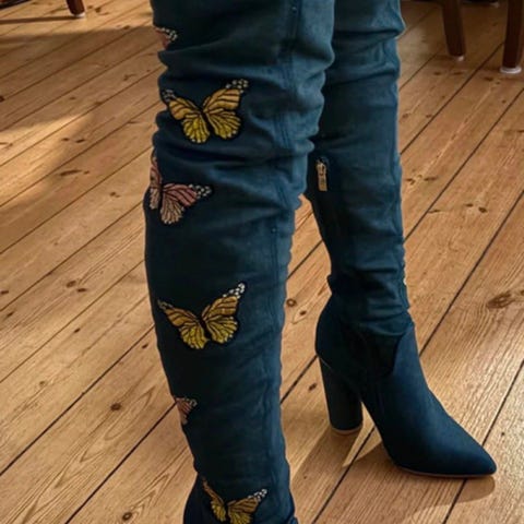 These boots feature a slim toe, high heel, and tall shaft, creating a feminine and classic silhouette that pairs beautifully with dresses, skirts, or jeans.