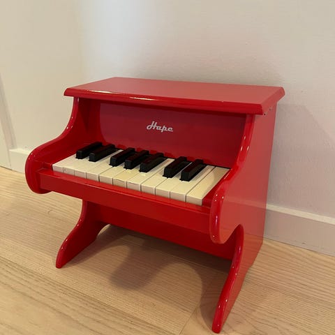 Klassisk børneklaver/børnepiano i sort fra Vilac. Lavet i højglanslakeret træ i Sydfrankrig. Det er solidt og kan holde til en masse børneklimpen. I fin stand - dog støvet og med lidt brugsspor. Nypris: 769kr.