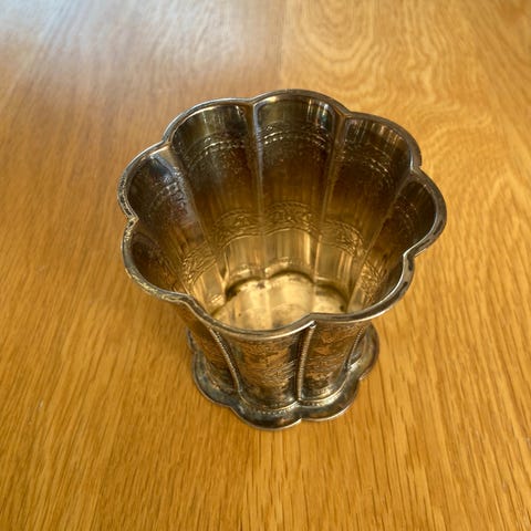 Klassisk bæger med to kinesiske sølvstempler.
