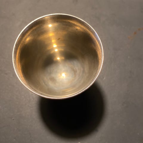 En professionel sølvhandler undersøgte fornyligt bægeret, sagde sølvet havde høj lødighed og gav en sølvpris svarende til tretårnet/Sterling.