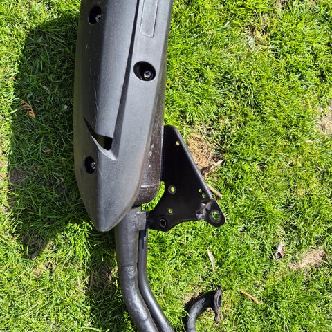 Stage6 udstødning til scooter med blå lyddæmper. Udstødningen er udført i metal med synlige svejsninger og separat lyddæmper monteret med bøjlebeslag. Velegnet til montering på scooter eller knallert, hvor der ønskes en sportsudstødning