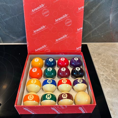 Sæt billardkugler i forskellige farver med tydelig nummerering. Kuglerne er runde og glatte, velegnede til brug på billard- eller poolbord. Flere numre er repræsenteret, og sættet kan anvendes som erstatningskugler eller til komplettering af et eksisterende sæt.