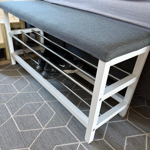 Bænken er brugt, men i god stand. Den er en smule beskidt nogle steder, men ikke ødelagt og fungerer helt som den skal. Kan nemt rengøres.