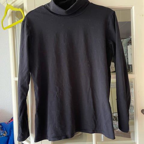 Ubrugt sort rullekrave bluse i 96 % viscose og 4 % elastan. Kan afhentes i Rødovre,Ølstykke eller sendes hvis køber betaler portoen.