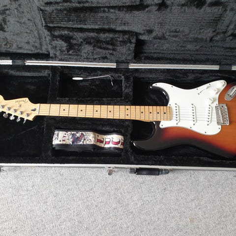 Helt som ny. Lyder smukt og som en fender. Sælges da jeg foretrækker telecasteren. Kan prøves på både min digitale og rørforstærker, og taske kan medfølge. Skriv endelig!