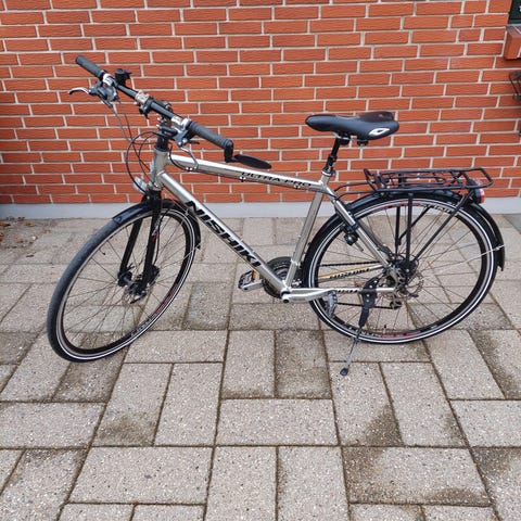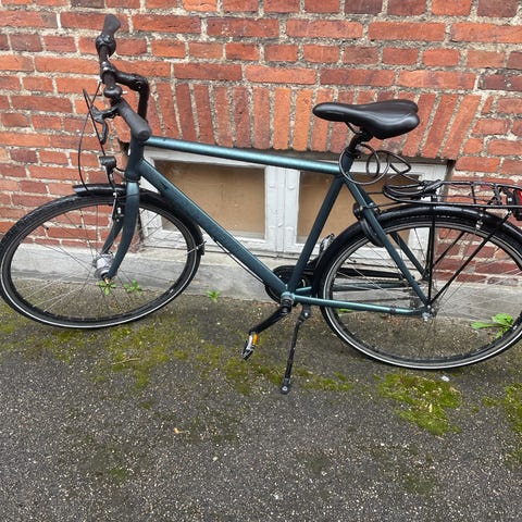 Centurion herre cykel. Cyklen har let stel med lige styr og udvendige gear betjent via drejegreb på styret. Udstyret med bagagebærer med trådkurv samt fælgbremser for og bag. Velegnet som pendler- og hverdagscykel til kortere og mellem-lange ture.