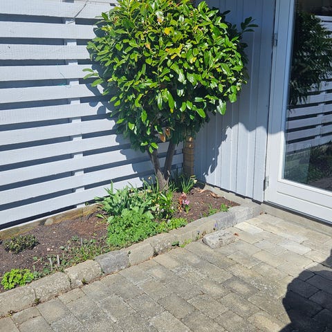 Kirsebærlaurbær hæk med tætte, stedsegrønne blade i grøn farve. Velegnet som afskærmning eller afgrænsning i haven. Planten har kraftige grene og store, læderagtige blade. Kan klippes og formes efter behov og bruges som sammenhængende hæk eller enkeltstående buske i bede og langs skel. Hækken er gammel og stammerne er tykke. Hækken måler ca 5-6m. Hækken er gratis, men du skal selv sørge for at grave den op og få den afhentet.