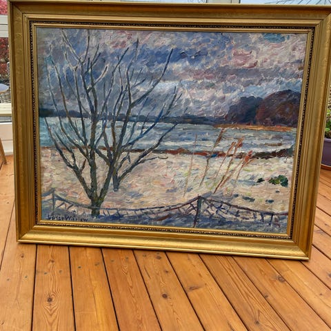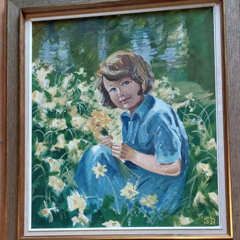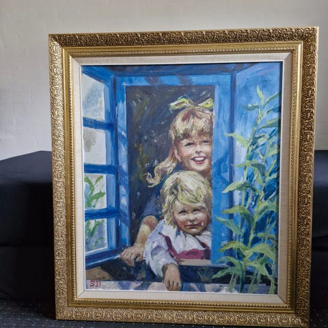 Maleri "barn" af Søren Brunoe. I flot ramme. Mål incl ramme højde 80, bredde 69,5