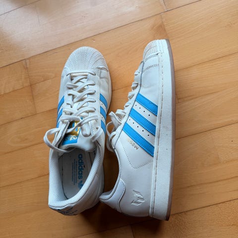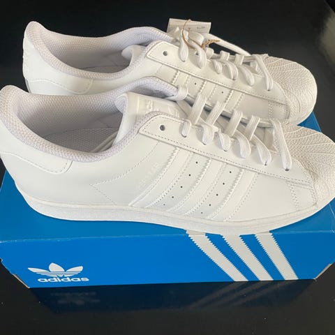 Adidas Superstar sneakers i hvid, størrelse 38. Klassisk skomodel med gummiskal-tå, snørelukning og gummisål med mønster. Overdel i syntetisk materiale med tekstilfor. Velegnet til hverdagsbrug.