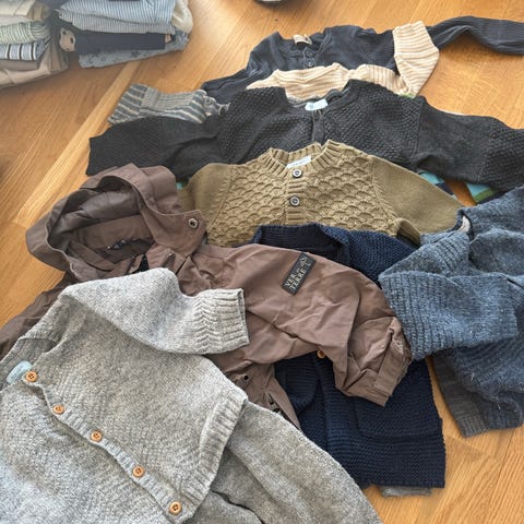 Der er strik trøjer som aldrig er blevet brugt (hjemmestrik)