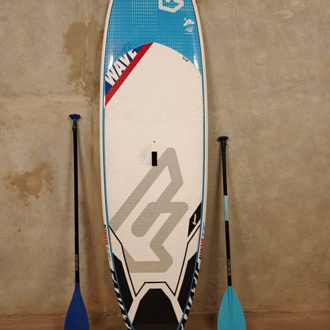 JP SUP board i hårdt materiale med mål 8'5" x 28". Boardet har skridsikkert dækmønster i grå og sort samt orange rails. Der er monteringshul til snor/håndtag og leash medfølger på billedet. Velegnet til stand up paddle i bølger eller fladt vand afhængigt af brugerens niveau og vægt. Boardet er designet til én person og bruges med pagaj (ikke vist).